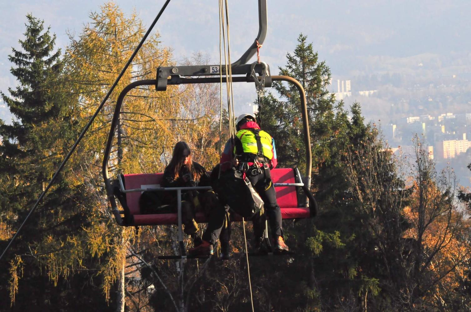 Součinnostního cvičení Horské služby ČR, Hasičského záchranného sboru ČR a provozovatele Skiareálu Ještěd se jako figuranti zúčastnili i žáci bezpečnostně právního oboru SŠ Kateřinky – Liberec s.r.o. Celkem 50 žáků bylo rozděleno na sedačky po celé délce lanovky a v rámci cvičení byli evakuováni záchrannými složkami na lanech na zem do bezpečného prostoru po simulovaném zastavení lanovky.