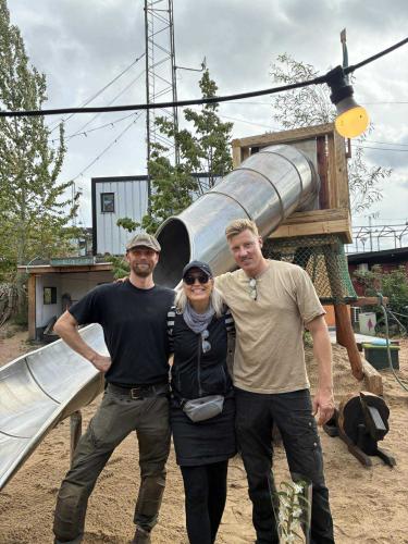 Jako vždy v případě mobilit do Dánska jsme i tentokrát zajistili cestu tzv. green travel, tady s využitím ekologičtější formy dopravy. Flixbusem se dá pohodlně dojet téměř kamkoliv po Evropě. V Dánsku žáci pracovali pod vedením mentorů z TEMBO Arkitektuur. Zadání tvořil designový prvek pro využití ve veřejném prostoru. Tak, aby umožnil využití pro široké spektrum osob. Zároveň se žáci museli popasovat s tím, aby do výsledného projektu bylo použito co nejméně nově zakoupených součástek a materiálů. Cílem bylo vymyslet koncept udržitelného prvku, který pomůže s up-cyklací materiálů, jež by jinak skončily na skládce. Naši účastníci koncept pojali hravě, a tak ze sesbíraných skříní, kusů dřeva, starých plechů a šroubů vznikla v parku v Aarhusu krásná skluzavka CZECH SLIDE pro děti i dospělé. Další vzpomínka na návštěvu z Kateřinek - protože výtvory našich designérů z minulých let v Aarhusu stále slouží svému účelu. To nás moc těší! Dva týdny utekly jako voda a my se těšíme, že se někdy v budoucnu zase do Aarhusu s našimi žáky podíváme.