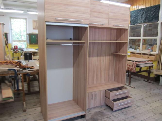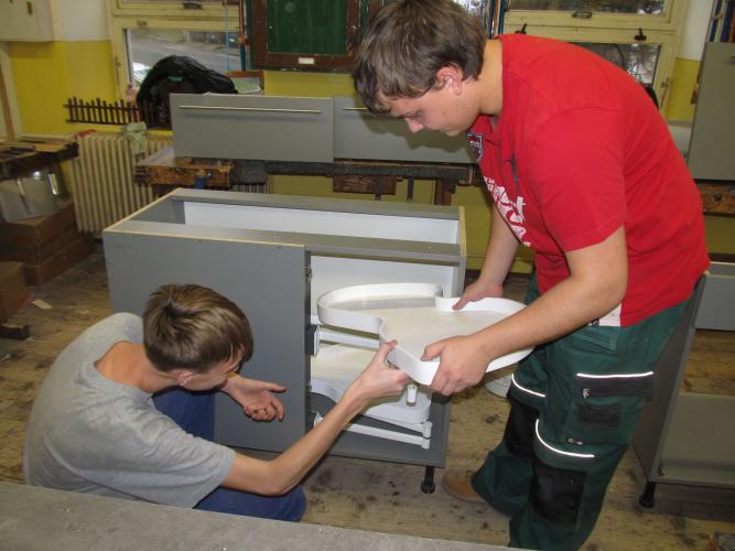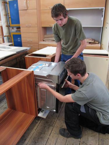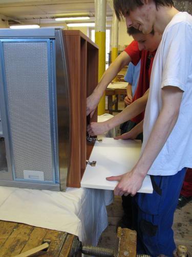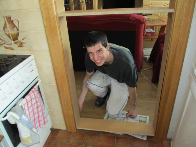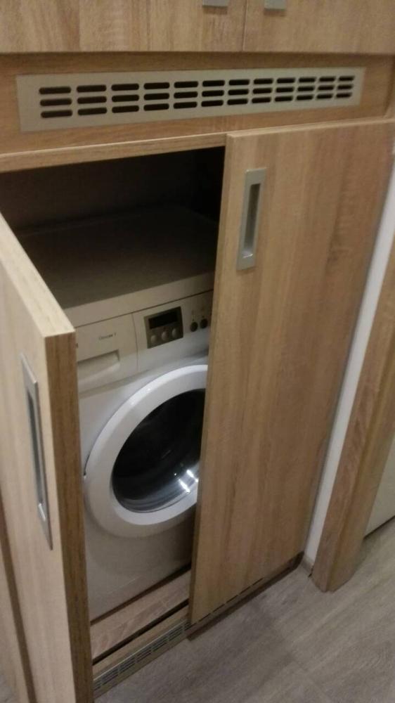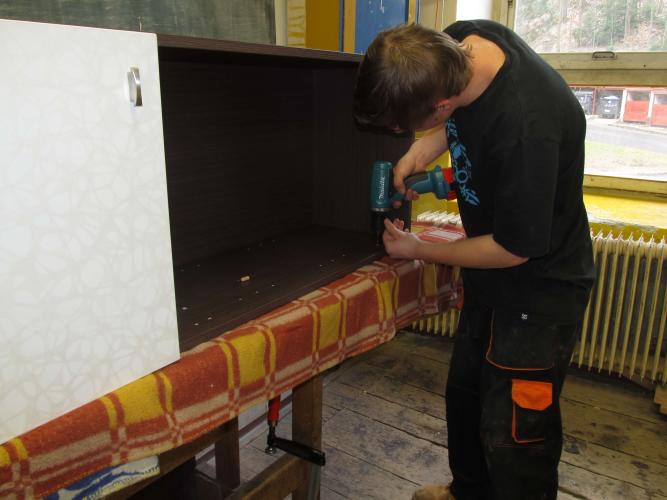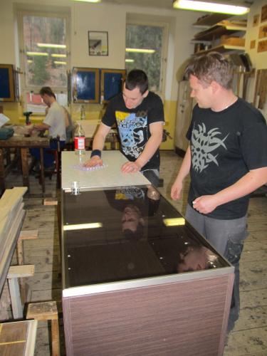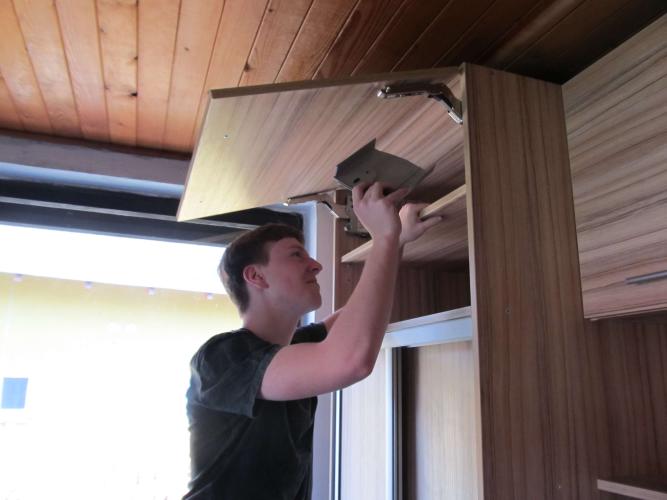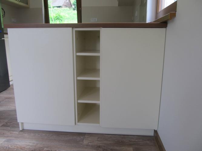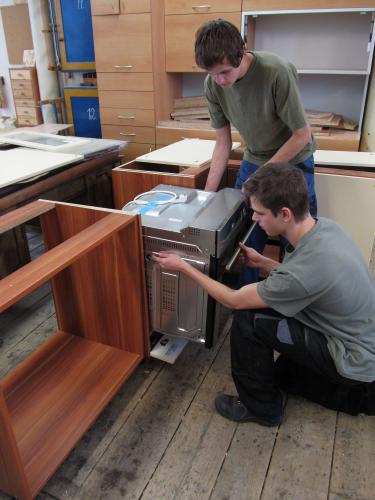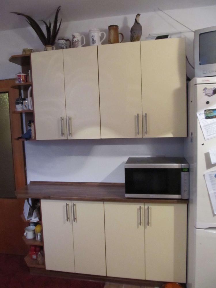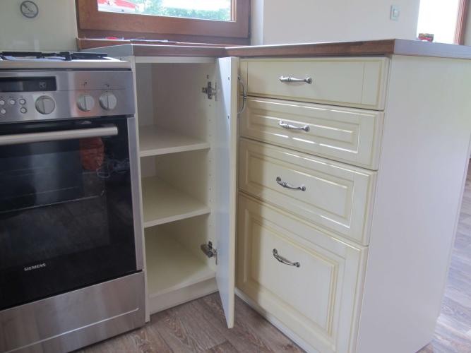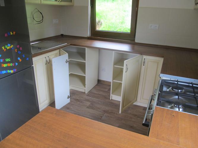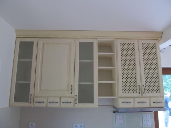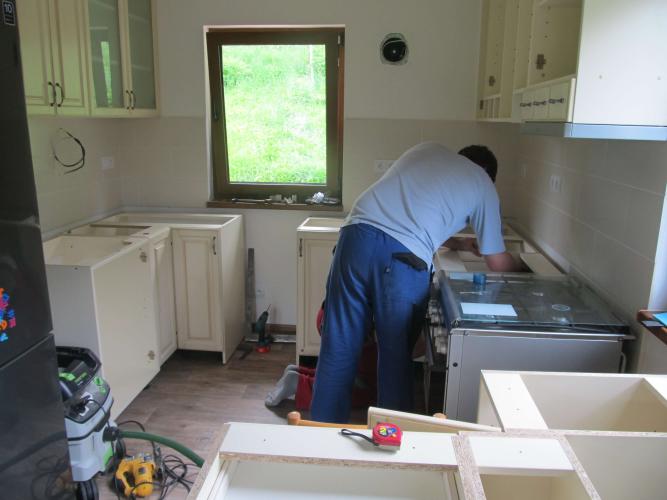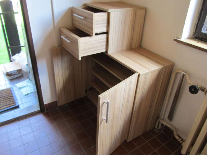 Výroba kuchyňské linky - dřevodekor + krémová dvířka