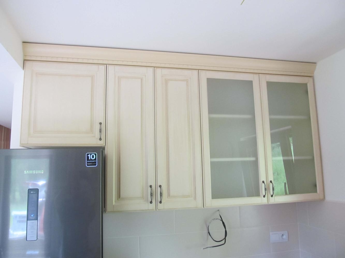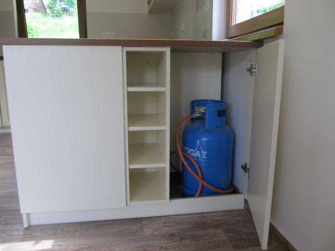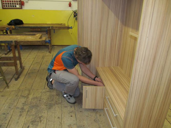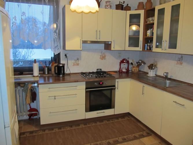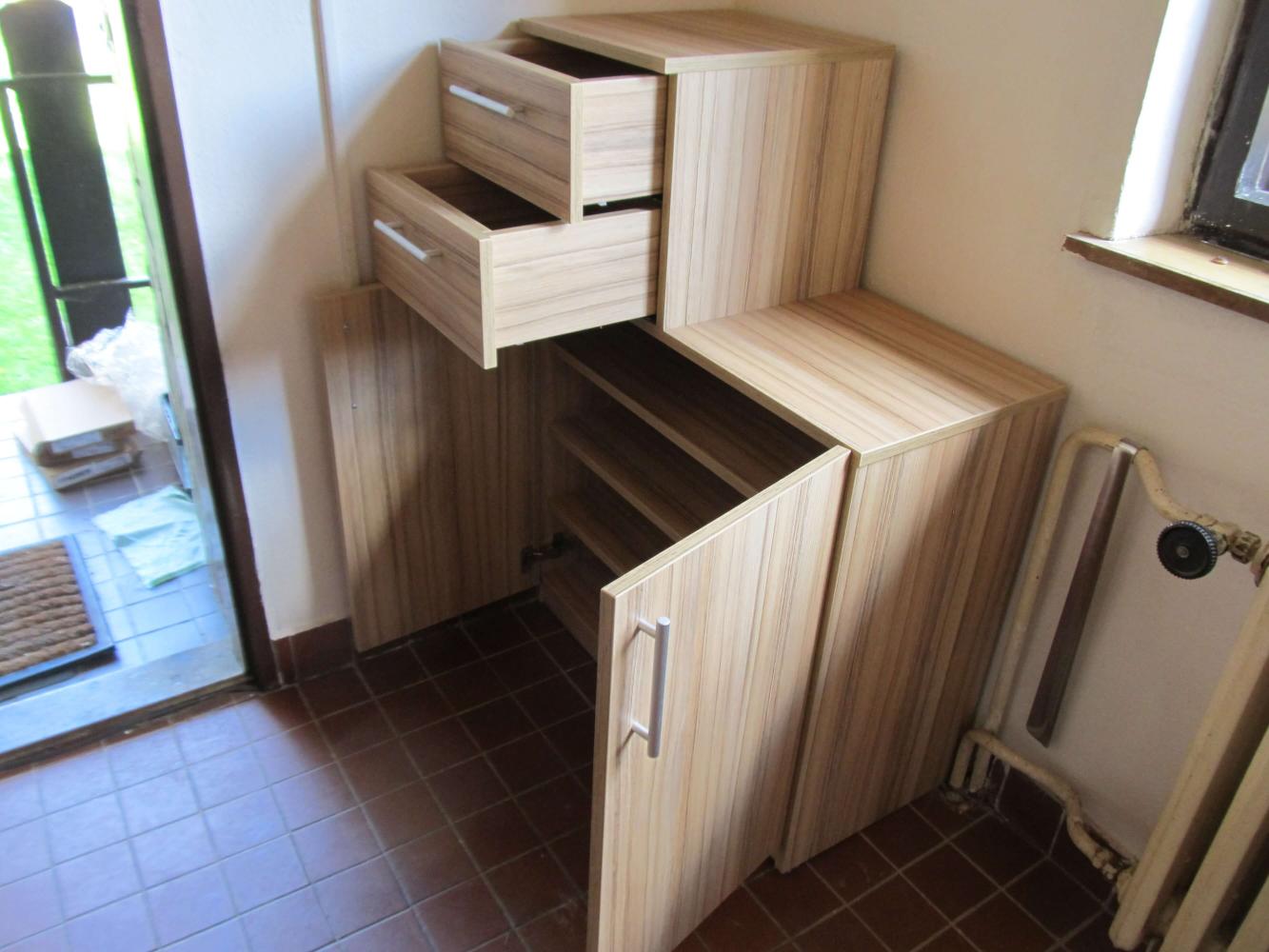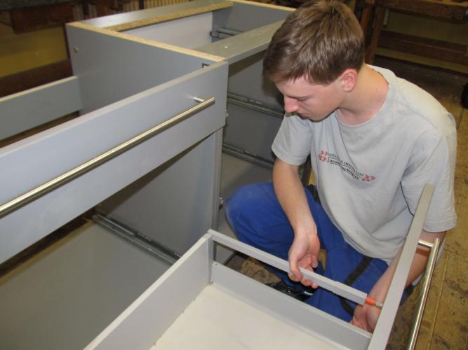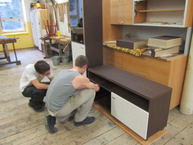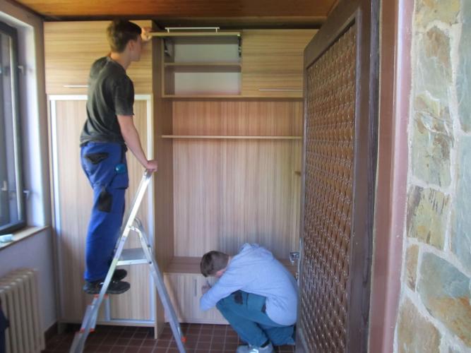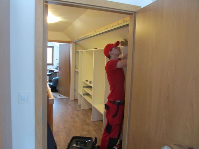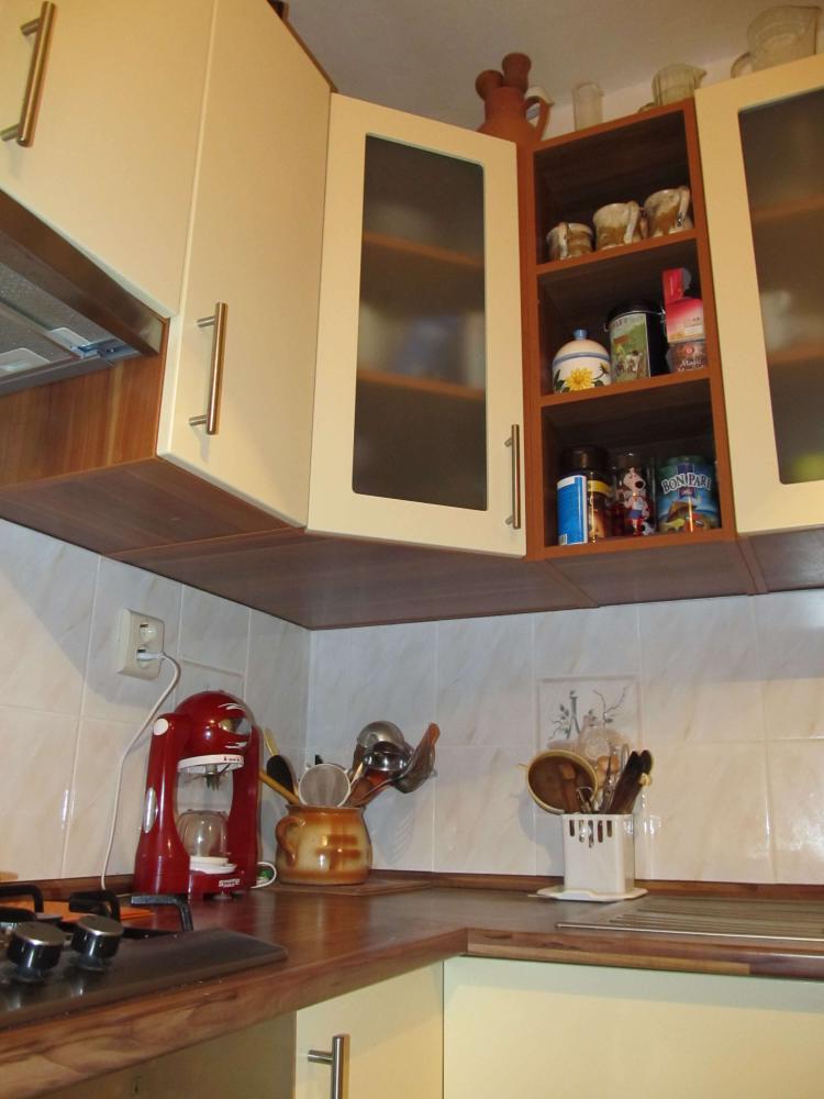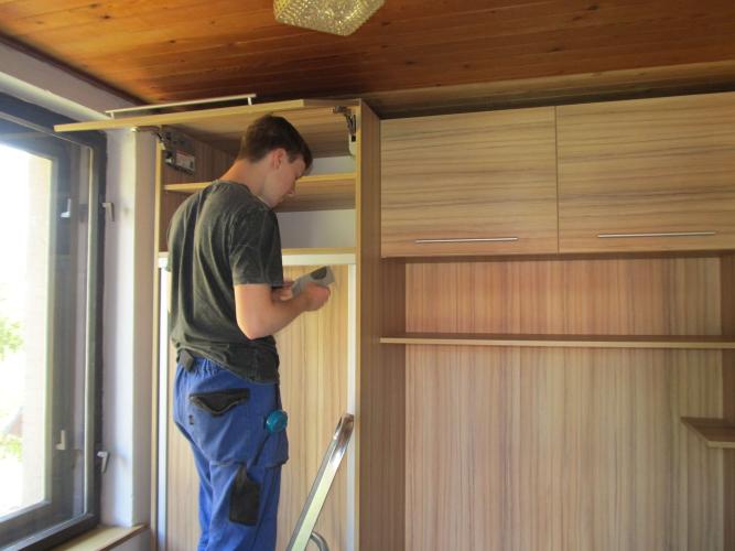 Výroba kuchyňské linky - dřevodekor + krémová dvířka