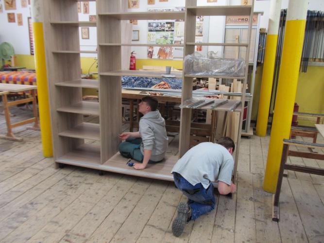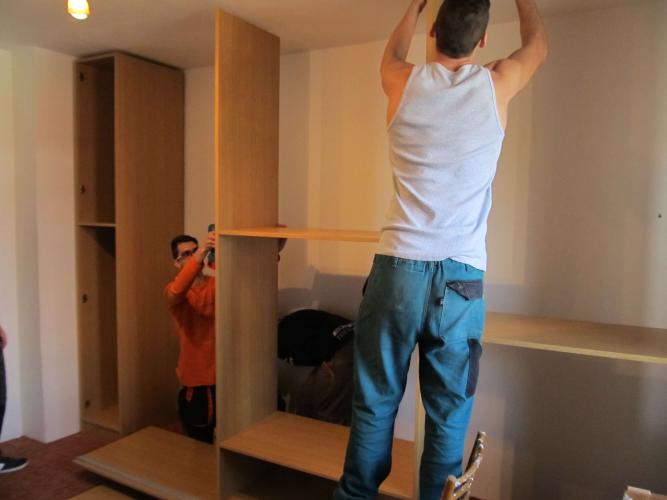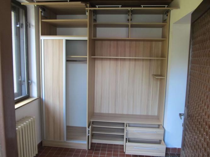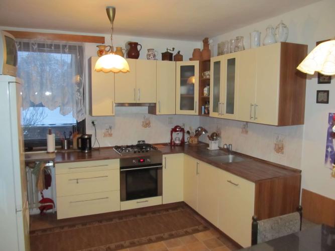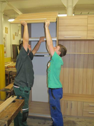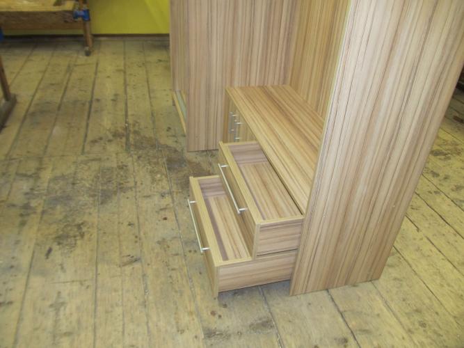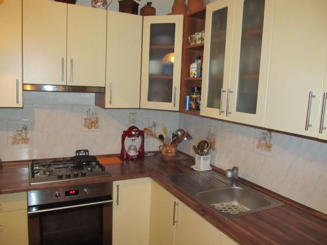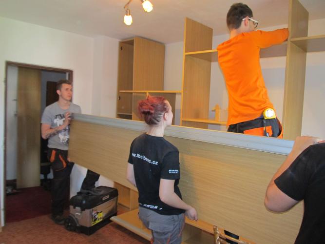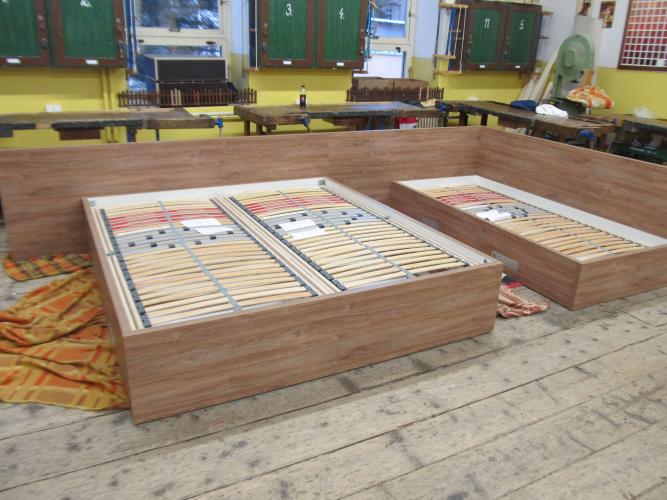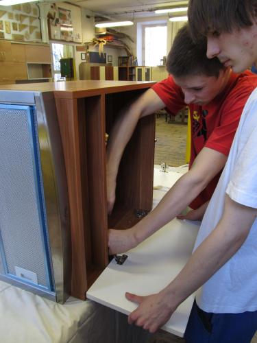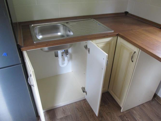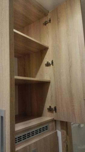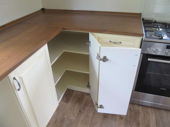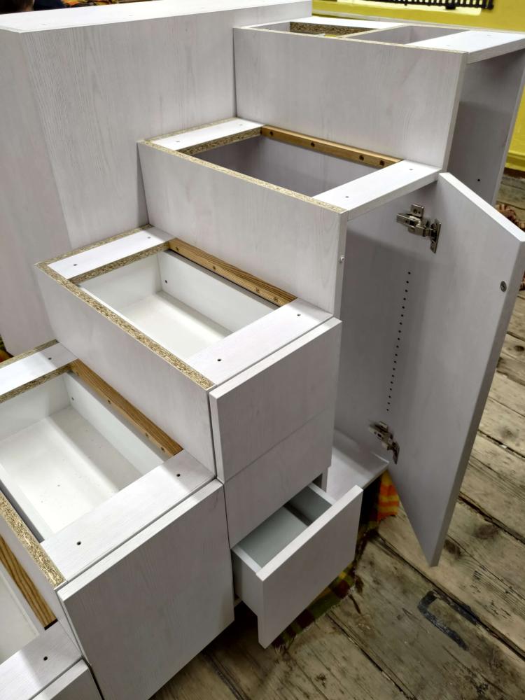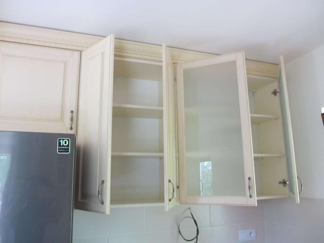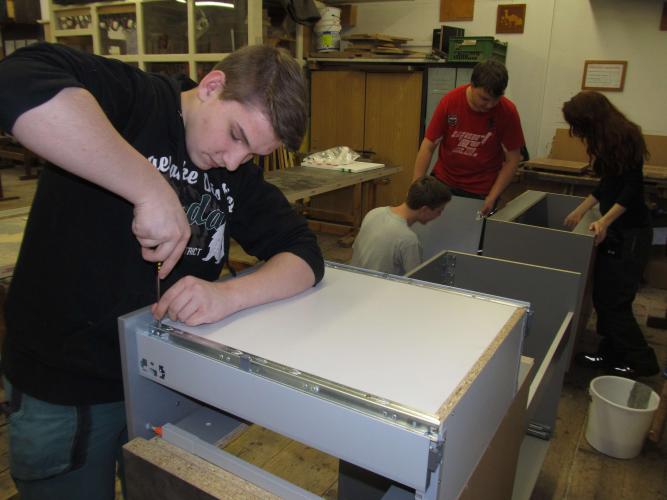 Výroba kuchyňské linky - dřevodekor + krémová dvířka