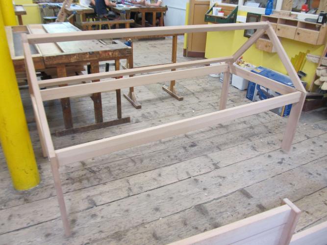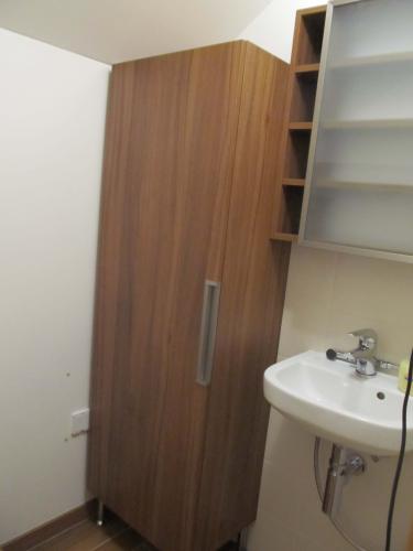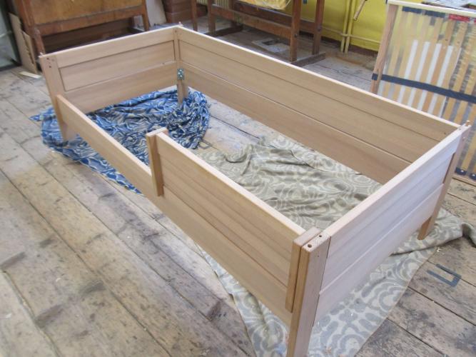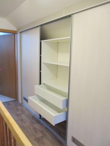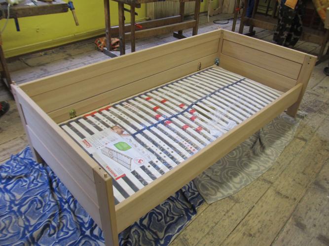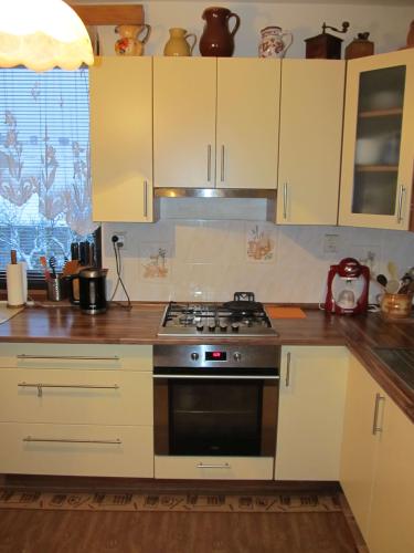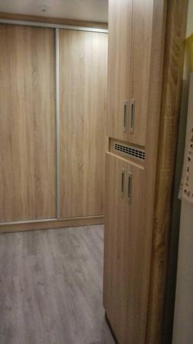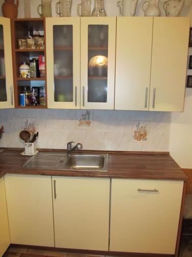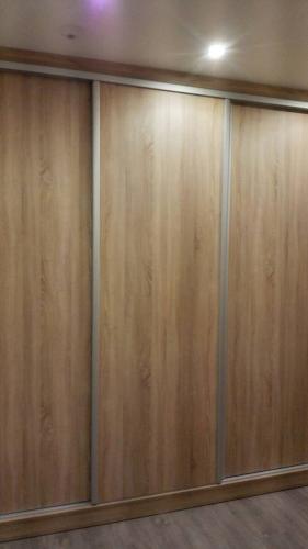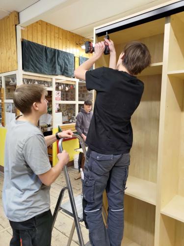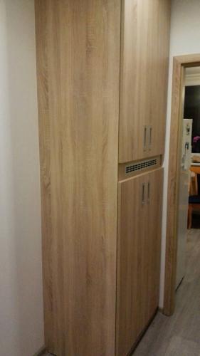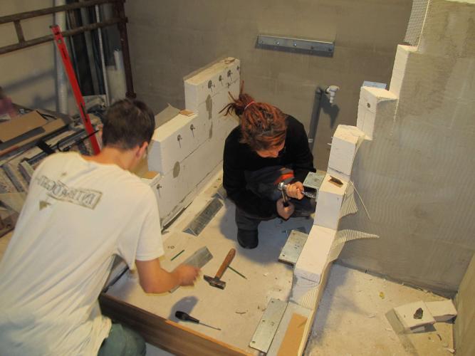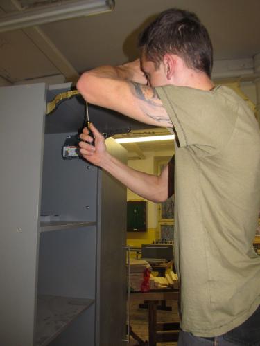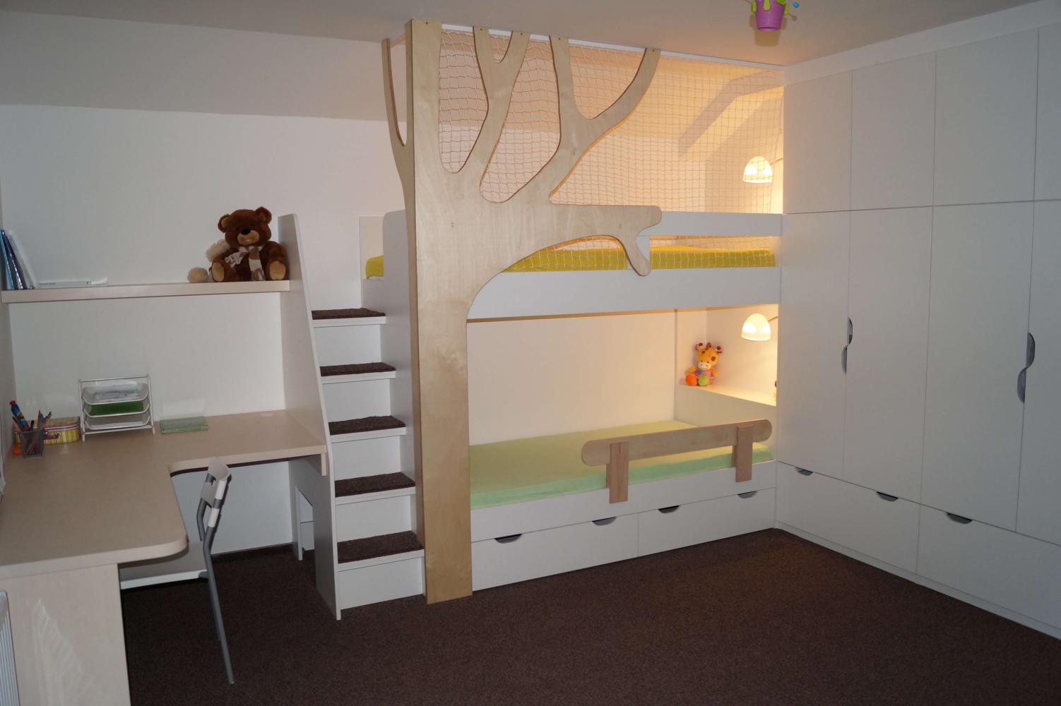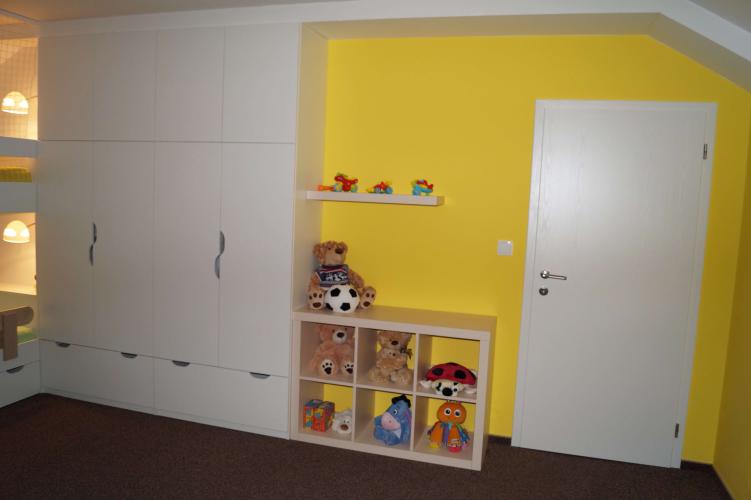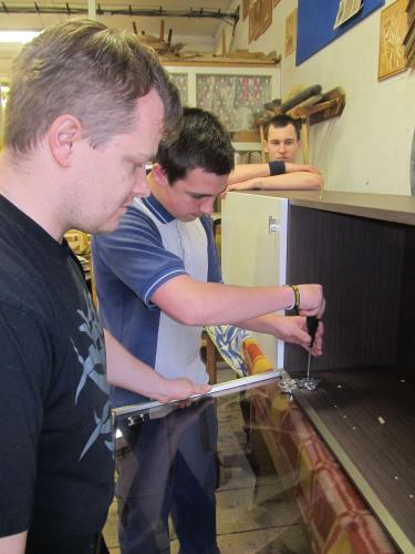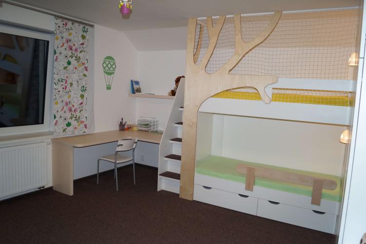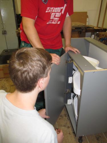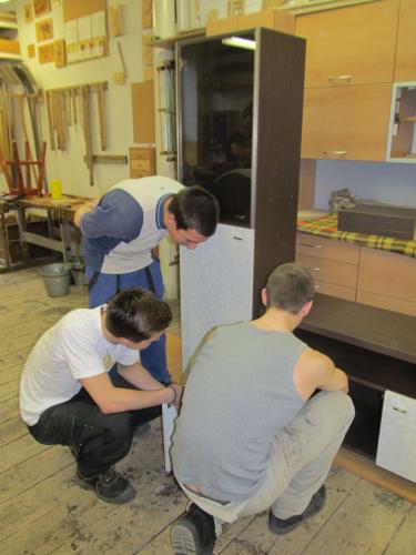 Výroba kuchyňské linky - dřevodekor + krémová dvířka