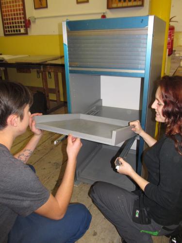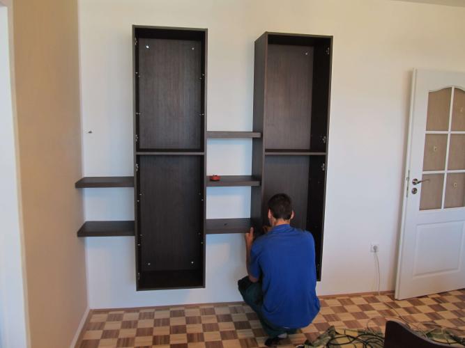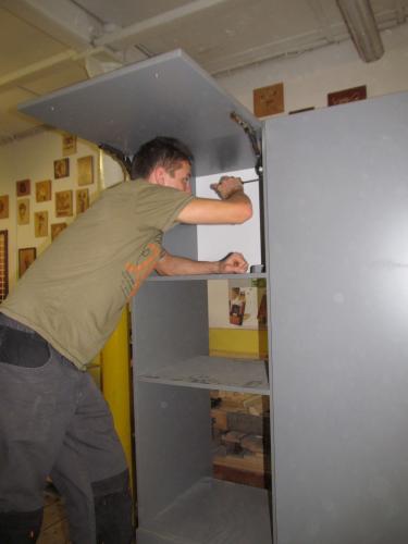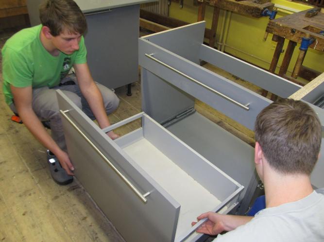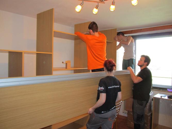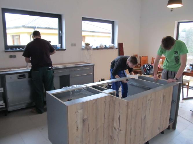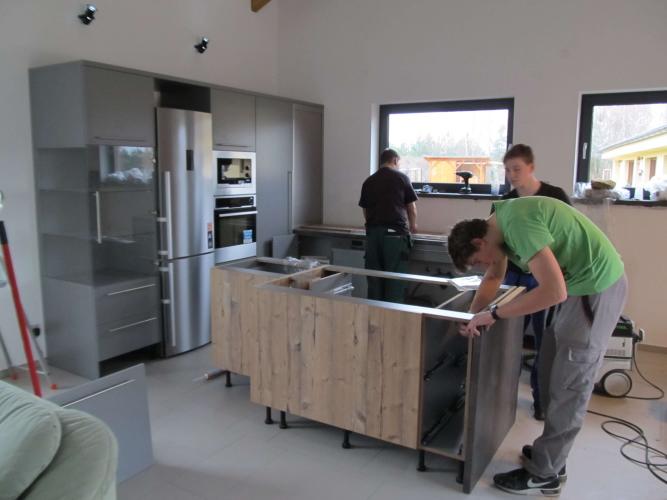 Výroba kuchyňské linky - dřevodekor + šedá dvířka