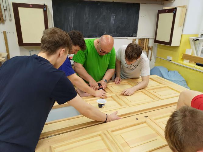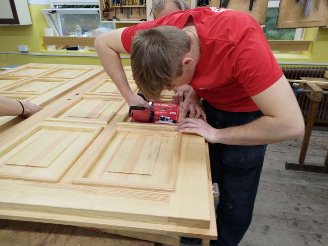 Výroba dvoukřídlých dveří z borověho dřeva