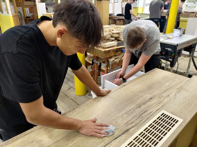 Výroba kuchyňské linky - světlý dřevodekor